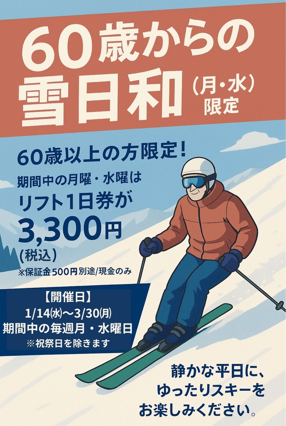 60歳以上の方限定!期間中の月曜・水曜はリフト1日券がお得!